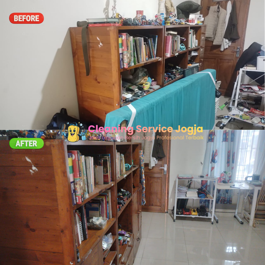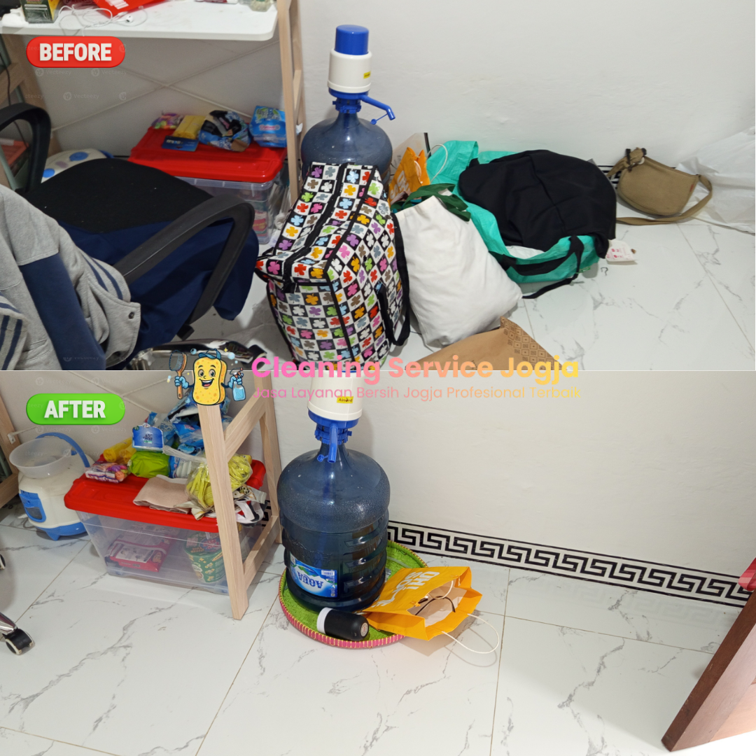 Dokumentasi before–after layanan cleaning di rumah, kost, apartemen, dan kantor oleh tim Cleaning Service Tangerang.